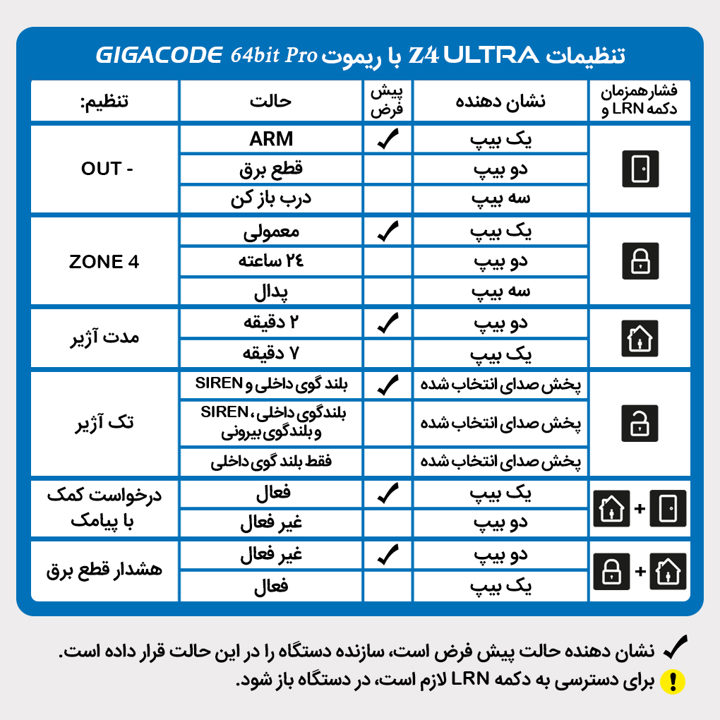 تنظیم انواع تک آژیر Z4 Ultra
