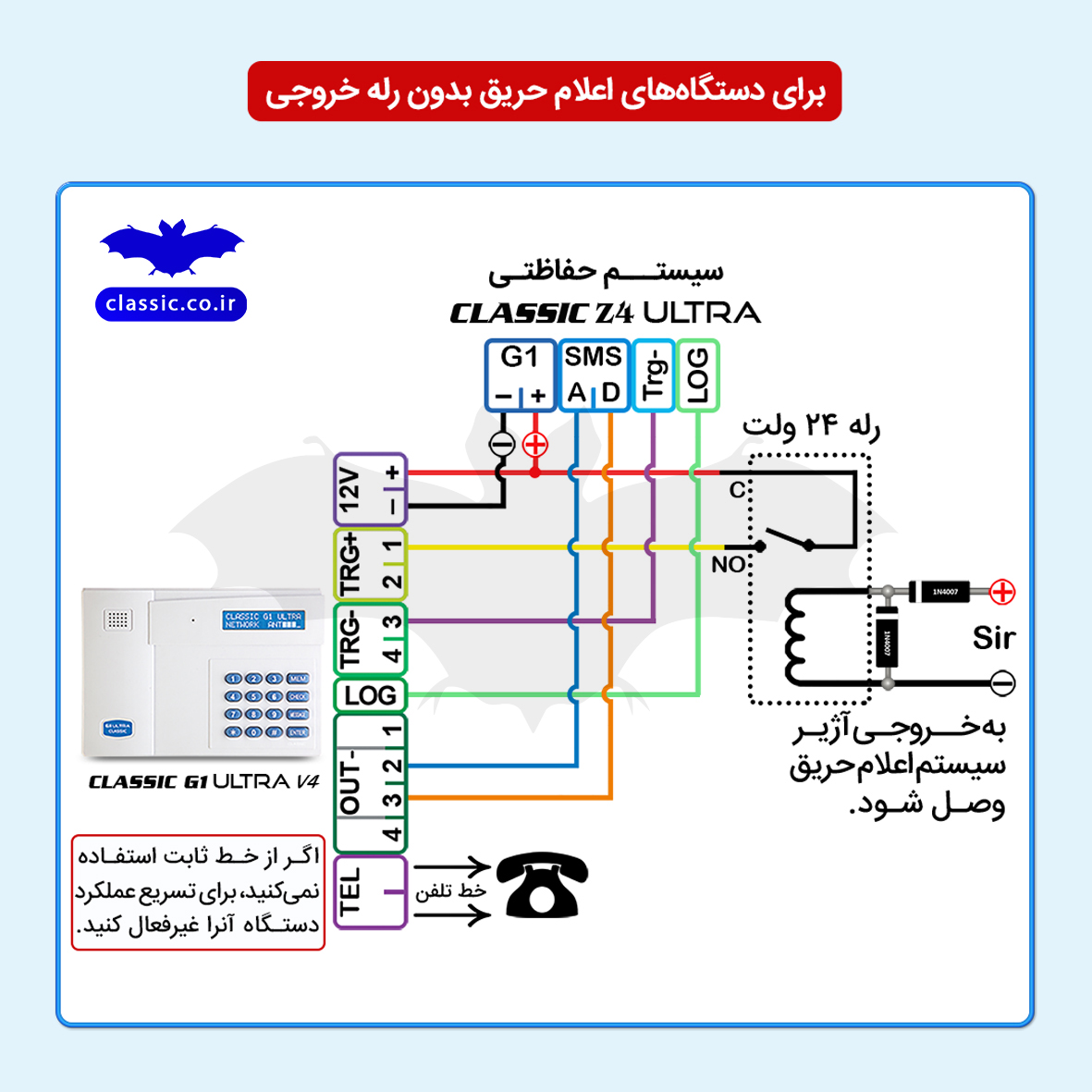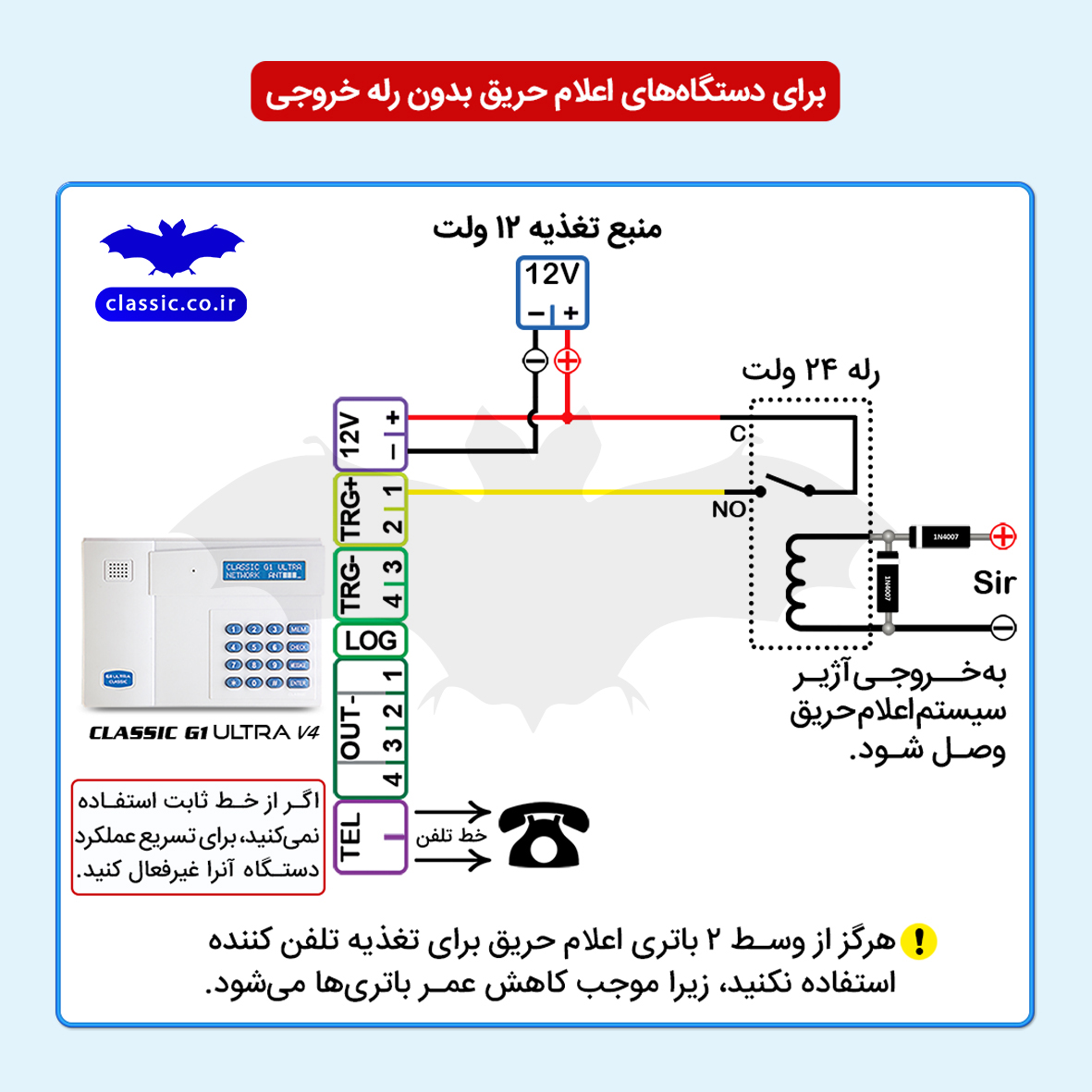 روش چهارم: اتصال G1 Ultra به سیستمهای اعلام حریق با رلۀ خروجی