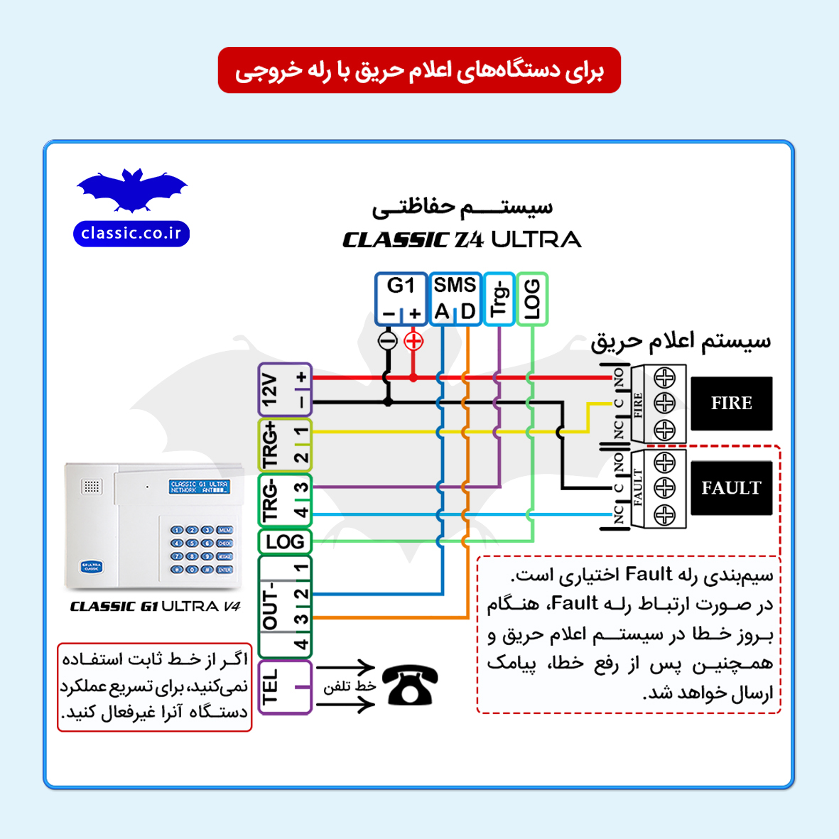 روش دوم: اتصال همزمان G1 Ultra و Z4 Ultra به سیستمهای اعلام حریق با رلۀ خروجی